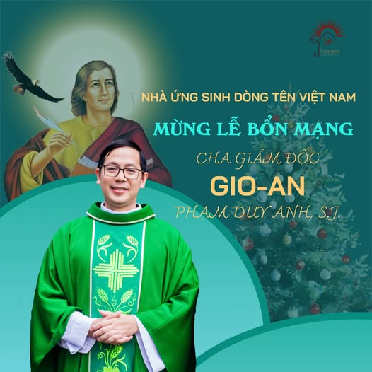 Mừng lễ bổn mạng thánh Gioan Tông đồ bổn mạng của Cha Giám đốc Gioan Phạm Duy Anh, S.J. Trong niềm vui hân hoan mừng kính Thánh Gioan Tông Đồ. Chúng con xin kính chúc cha luôn dồi dào ơn Chúa, tràn đầy bình an và niềm vui, ngày càng...