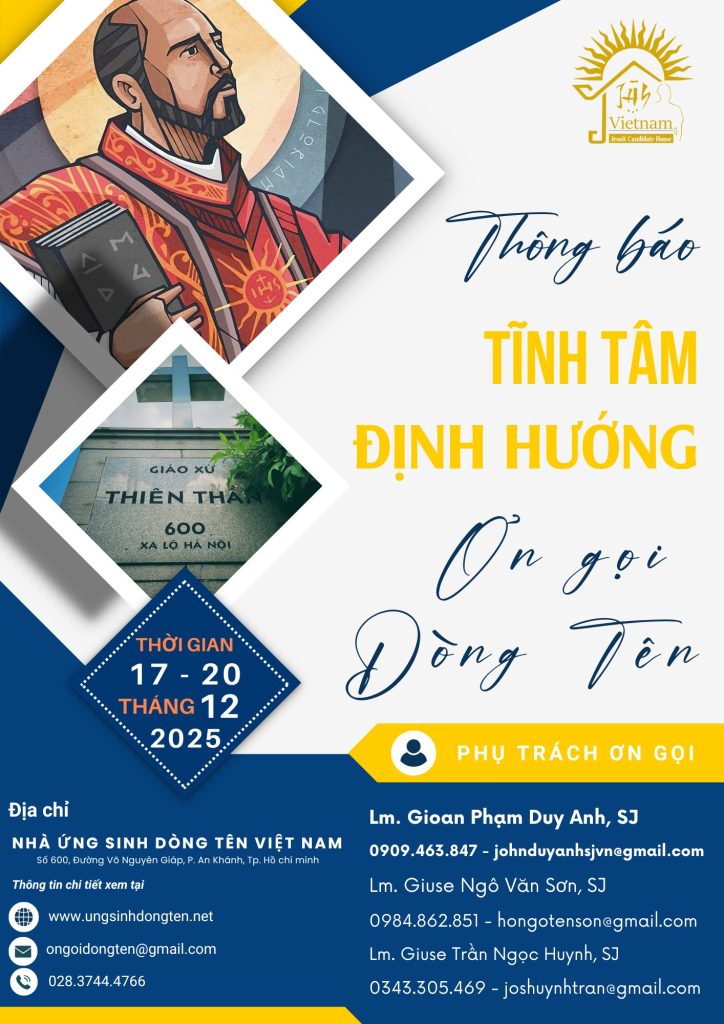 Nhằm giúp các bạn nam Công giáo, phân định ơn gọi đời sống thánh hiến theo Linh đạo Dòng Tên Việt Nam, Nhà Ứng Sinh Dòng Tên tổ chức khóa Tĩnh tâm Định hướng ơn gọi Dòng Tên.